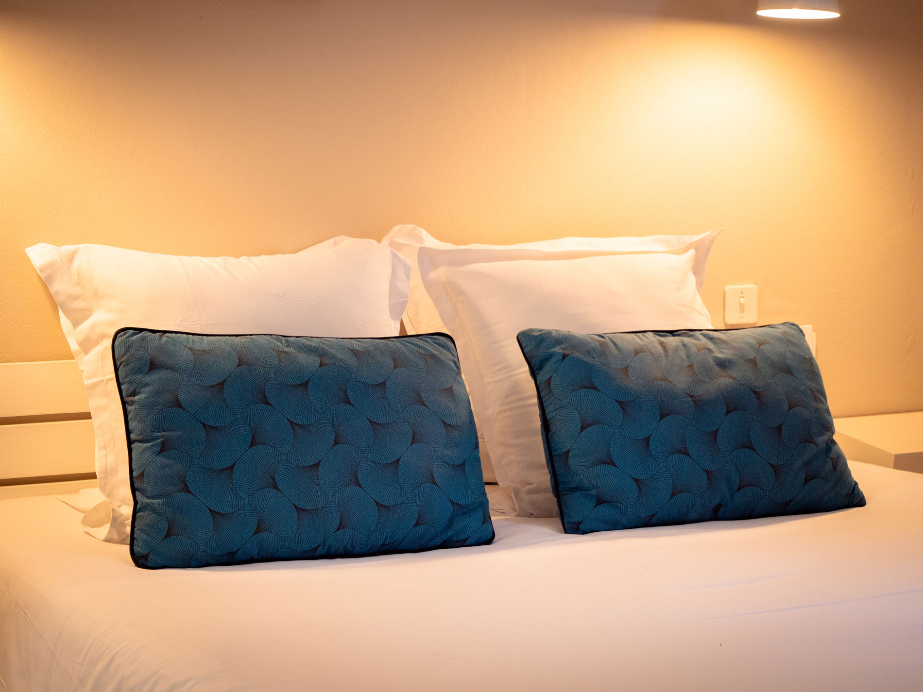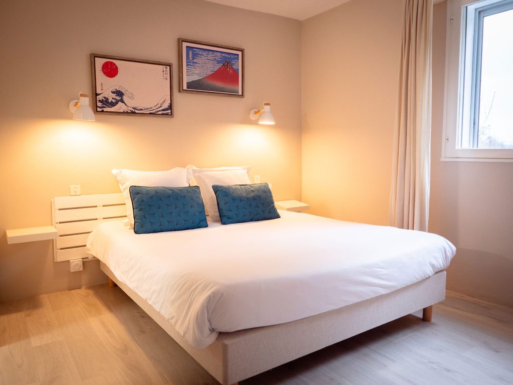 21 chambres tout confort équipées d’un lit queen-size 160×200 cm, WiFi fibre haut débit inclus, Smart TV (Netflix, Prime avec vos codes), plateau courtoisie thé/café, sèche-cheveux. Facturation société disponible. Tarifs professionnels à partir de 59 € TTC/nuit.