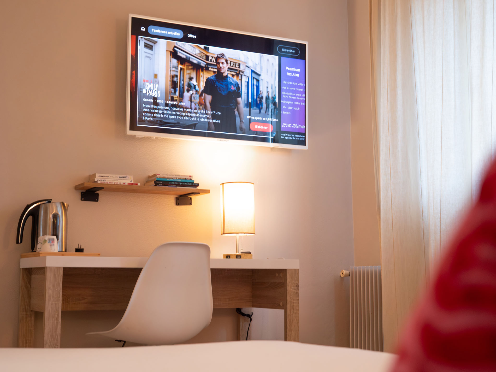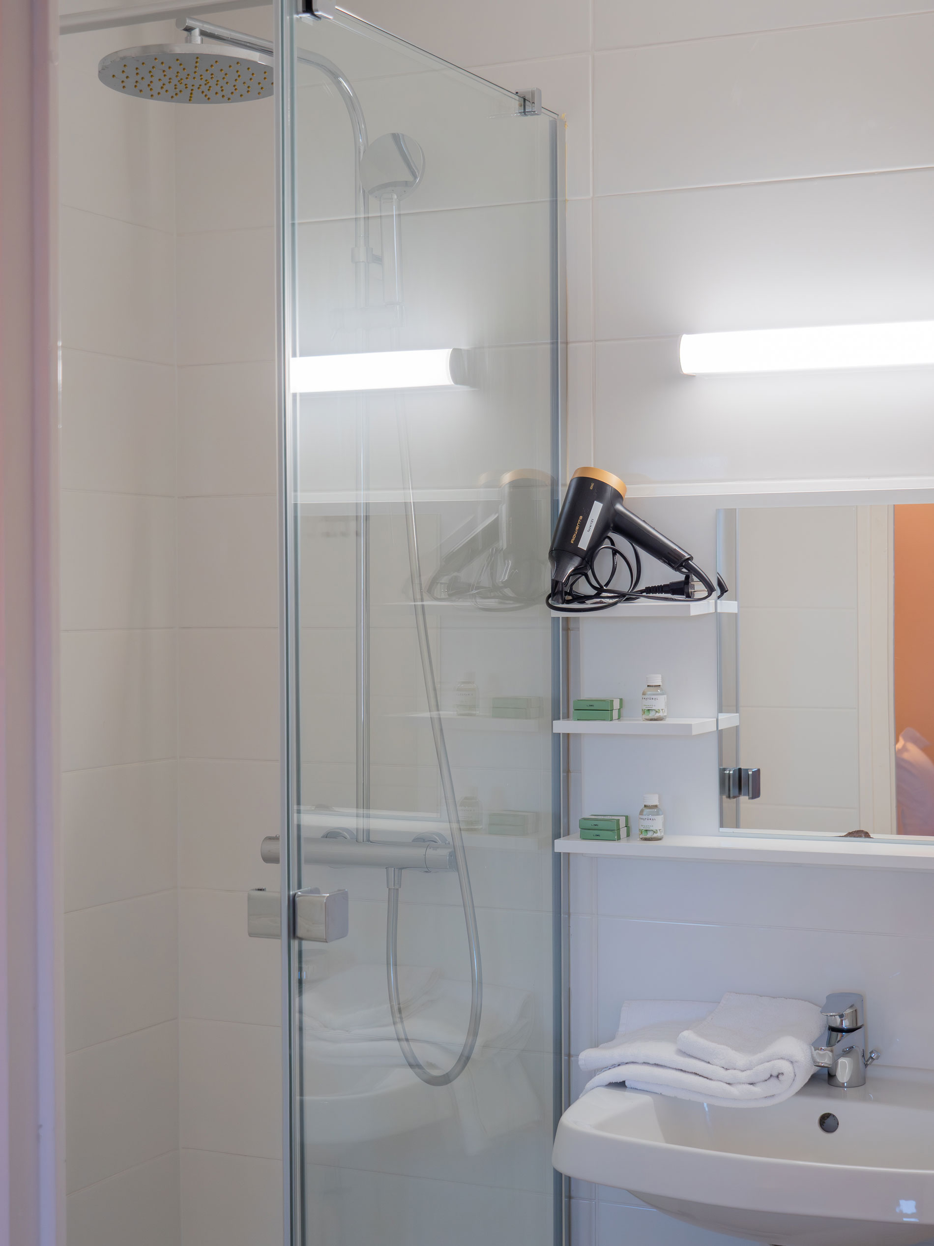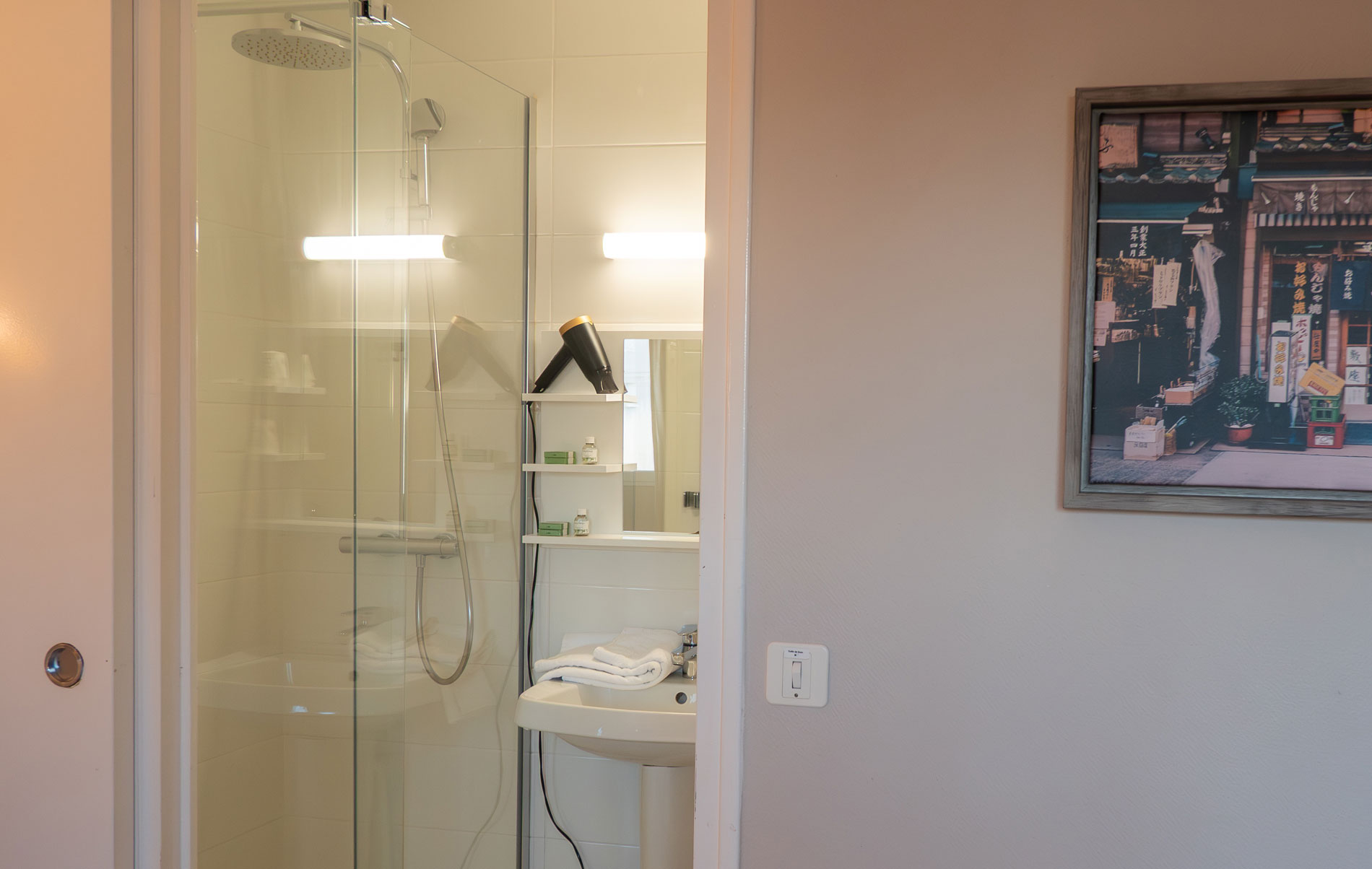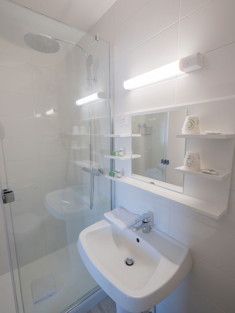 21 chambres tout confort équipées d’un lit queen-size 160×200 cm, WiFi fibre haut débit inclus, Smart TV (Netflix, Prime avec vos codes), plateau courtoisie thé/café, sèche-cheveux. Facturation société disponible. Tarifs professionnels à partir de 59 € TTC/nuit.